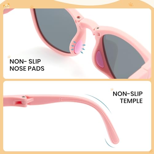 • ULTRALIGHT MATERIAL - This kid's folding sunglasses made by TR90 with ultralight weight, more impact and wear resistance,TR90 Frame Strong adjustment ability, suitable for various face square face, a Long face, a diamond face, an oval face, a round face.
