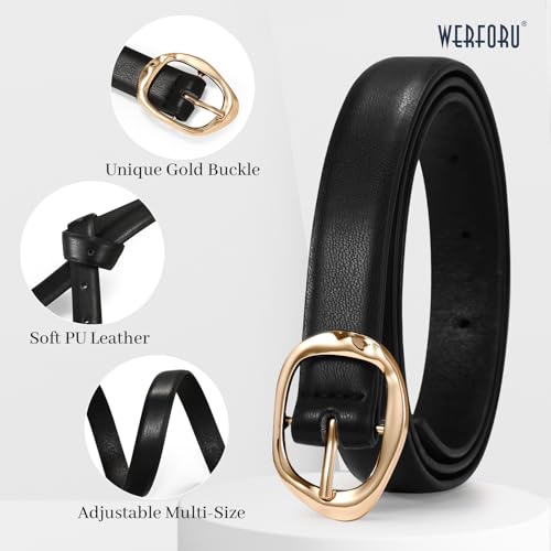 WERFORU Women Skinny Leather Belt with Unique Gold Buckle Ladies Casual Thin Belt for Jeans Dresses,0.7" width 1
