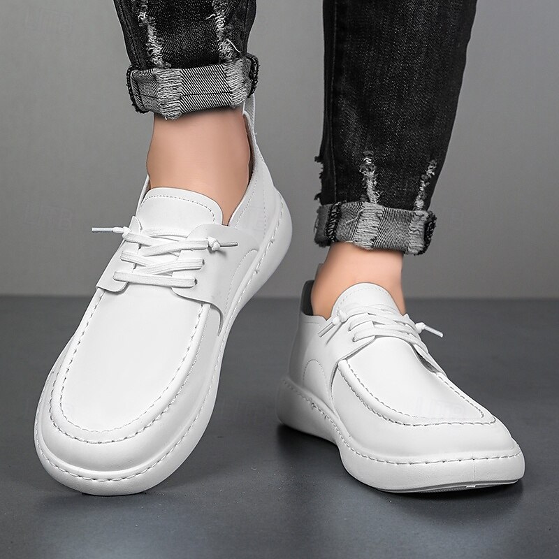 HOT ! Men's Casual Faux Leather Lace-Up Shoes - Lightweight and Comfortable Moccasin Style for Walking, Travel and Everyday Wear