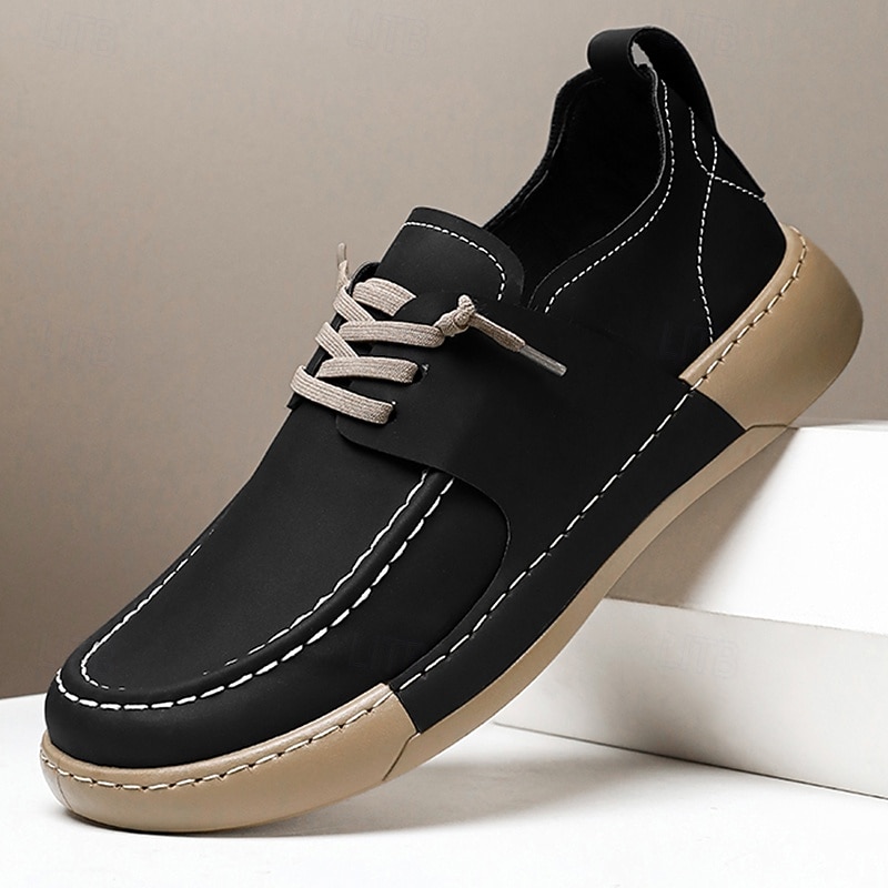 Men's Casual Faux Leather Lace-Up Shoes - Lightweight and Comfortable Moccasin Style for Walking, Travel and Everyday Wear 36