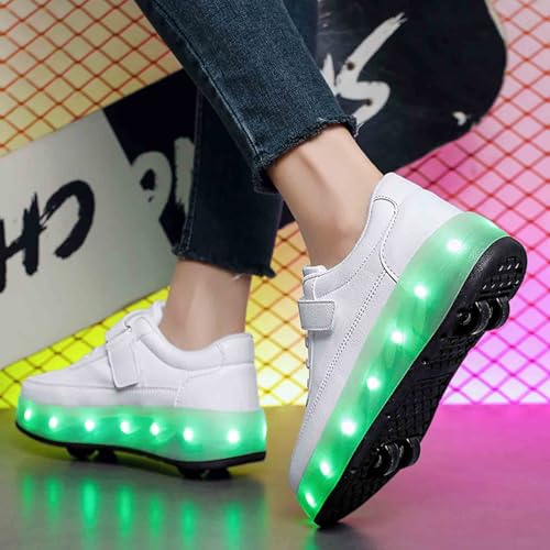 • 🎃【12 Modes】The shoes with 4 wheels for kids have double wheels at the front and back, you can use the two-wheel mode or 4-wheel mode according to your needs, and when you remove all the wheels, the kids shoes with wheels on heel become a pair of ordinary sneakers.At night, children become shining stars in the crowd after wearing 12 modes of sports shoes