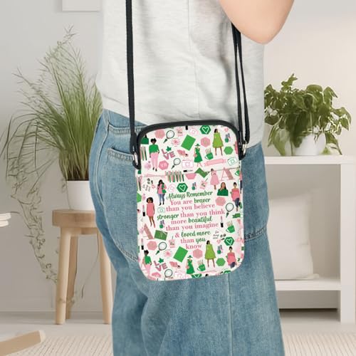 LEVLO Sorority Cross Body Bag Pink & Green Gift You Are Braver Stronger Smarter Than You Think Greek Sorority Shoulder Bag 6