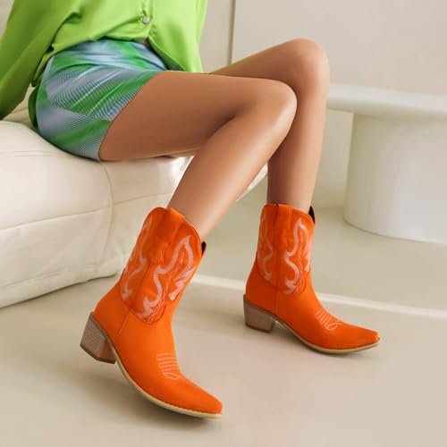 Cozivwaiy Classic Cowboy Booties Embroidered Women Pointed Toe Ankle Boots Western Country Boots Pull on Block Heel Booties 5