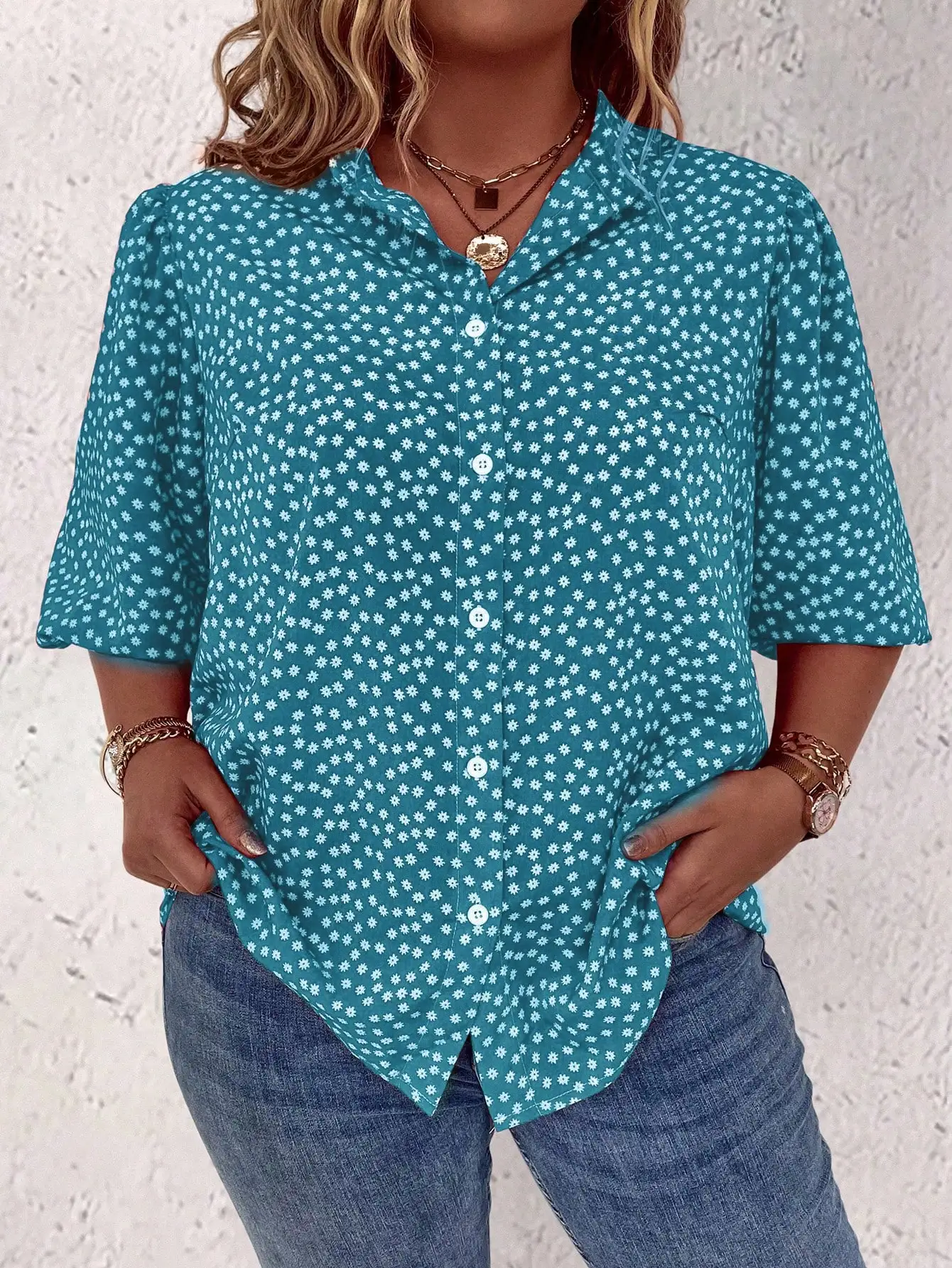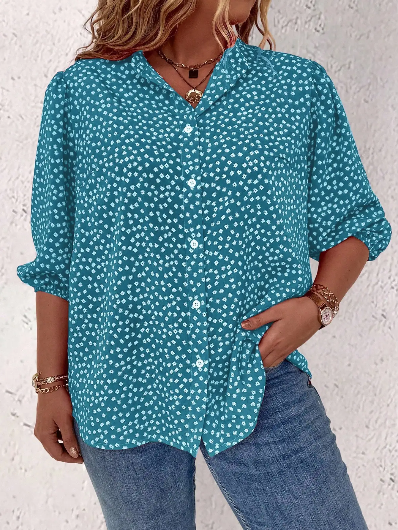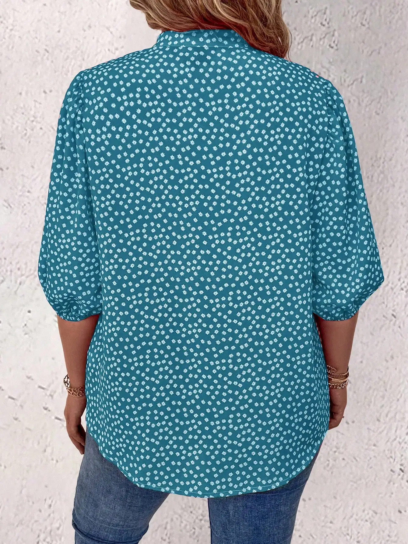 Plus Size Floral Long Sleeve Fashionable Casual Top