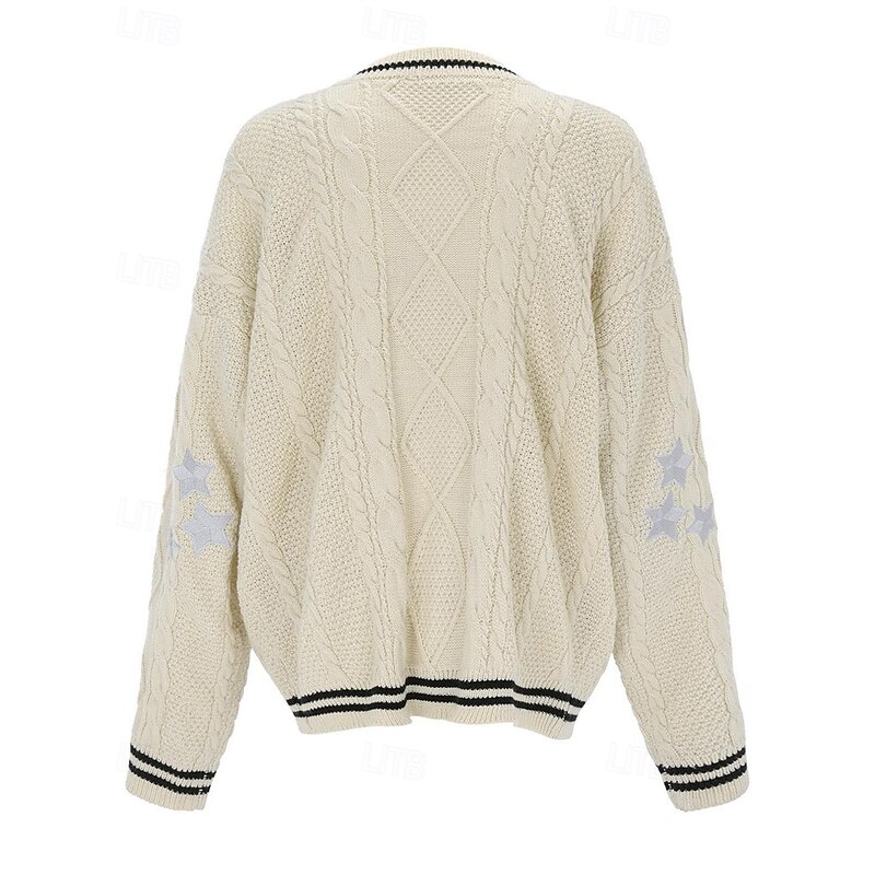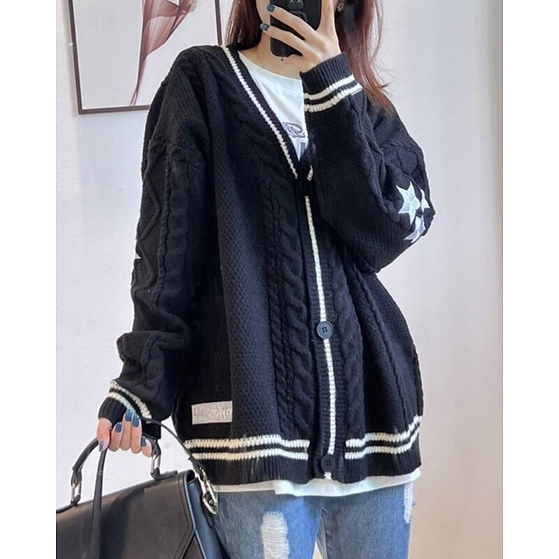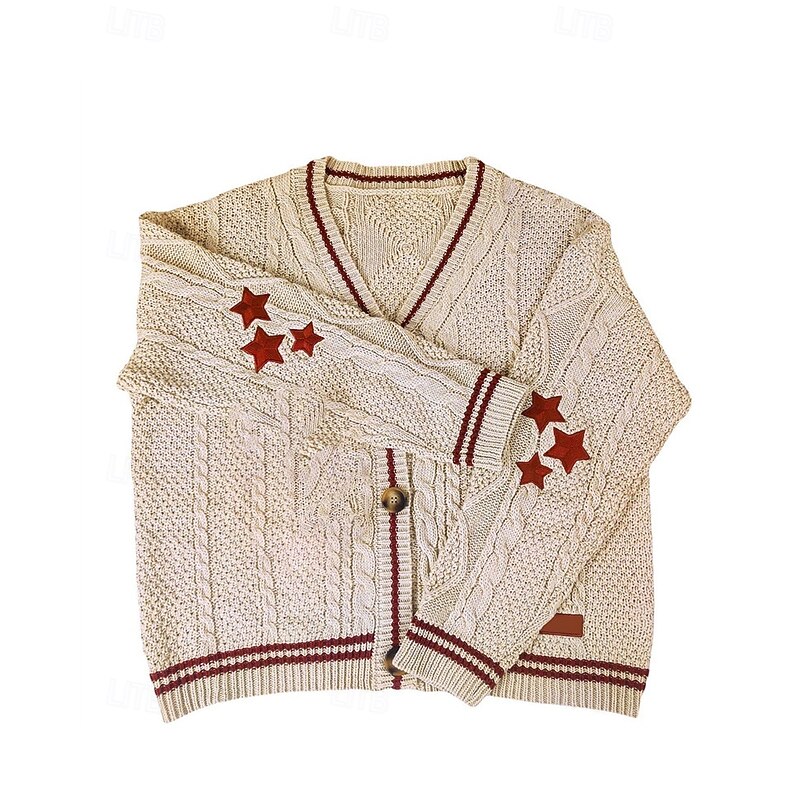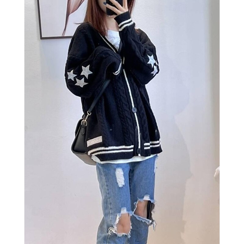 More information about Women's Sweater Cardigan Fashion Streetwear Daily Star Ribbed V Neck Knitted Long Sleeve Regular Tops Knit Holiday Going out Weekend Black Red Fall Winter