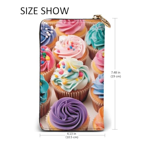 HOT ! Birthday Cupcakes Wallet For Women Men Clutch Rfid Blocking Leather Wallets Large Capacity Purse Credit Card Holder Money Case With Zipper Phone Holder Long Travel Purse