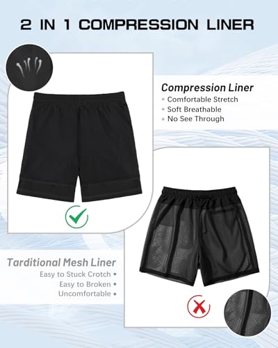 • 【2 in 1 Compression Shorts Men】Mens swim trunks with brief liner is soft and comfortable to protects your skin from chafing and irritation during activities