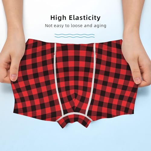 HOT ! Boys' Cotton Boxer Brief Soft Underwear-Buffalo Plaid Red Black