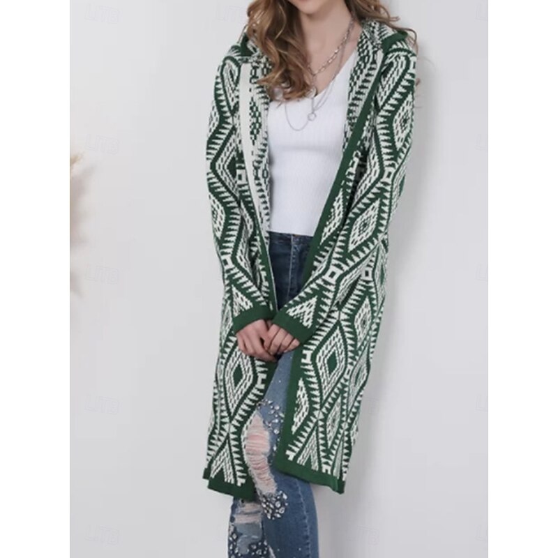 Highlights [Fabric and Fit] : This women's zip sweater jacket is crafted from high-quality polyester, providing a soft and comfortable feel with micro-elasticity for ease of movement. It features a loose fit and regular top length, making it ideal for layering over other garments. [Design Highlights] : The sweater showcases a distinct geometric and paisley pattern, offering a stylish yet casual look. It includes a convenient zipper front and a hooded design, enhancing its versatility and functional appeal. The crew neckline adds a classic touch, while the long sleeves ensure warmth during cooler months. [Occasions] : Perfect for daily wear, outdoor activities, and weekend outings, this sweater is suitable for both fall and winter seasons. Its relaxed and cozy style makes it ideal for various occasions, effortlessly complementing casual ensembles. [Size Range and Recommendations] : Available in a variety of colors including green, black, khaki, and wine red, this sweater comes in sizes S through 2XL, catering to a broad range of body types and preferences. This selection ensures you find the right fit, adding comfort to your wardrobe staples.