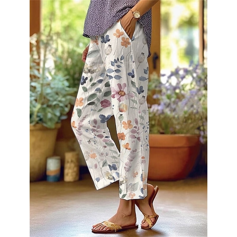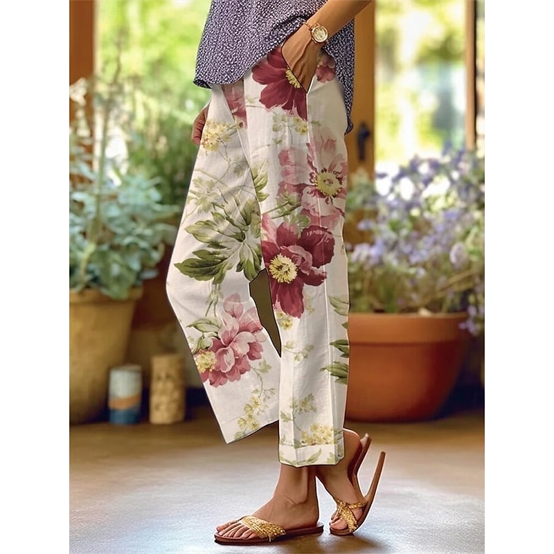 More information about Women's Cotton Linen Baggy Pants Chinos Fashion Streetwear Ankle-Length Medium Waist Graphic Pocket Comfy Soft Comfortable Micro-elastic Outdoor Street Magenta Navy Light Green Burgundy Regular Fit