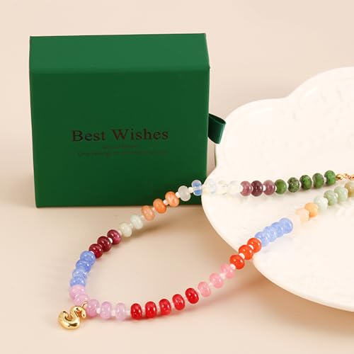 • COLORFUL COMPOSITION: Handcrafted with an array of natural-looking beads in green, red, blue, pink, and other complementary colors,does not harm the skin,suitable for wearing by various people.