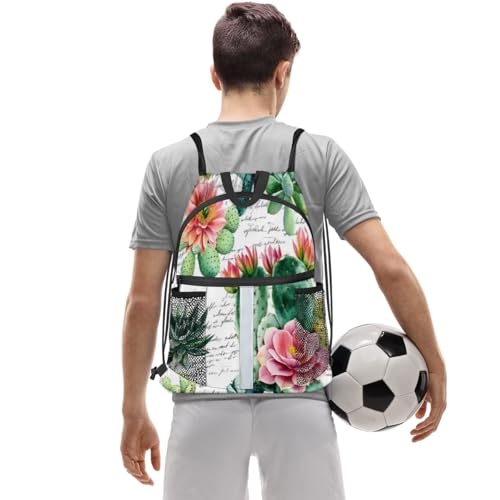 Tropical Cactus Drawstring Backpack with Water Bottle Pocket Lightweight String Bag Space Cacti Floral Sports Gym Swim Sackpack for Men Women 5