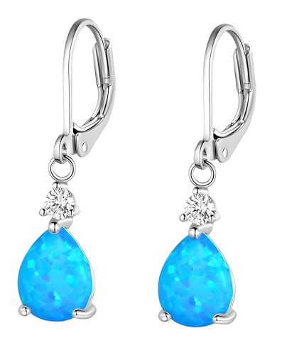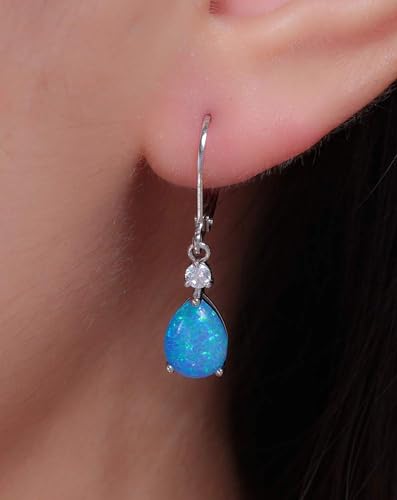 Drop Dangle Earrings for Women, Pear Cut Created Opal Teardrop Earrings, Silver Rose Gold Plated Copper Brass Micro Jewelry Gifts Box 6