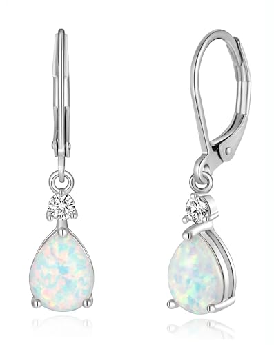Drop Dangle Earrings for Women, Pear Cut Created Opal Teardrop Earrings, Silver Rose Gold Plated Copper Brass Micro Jewelry Gifts Box 1