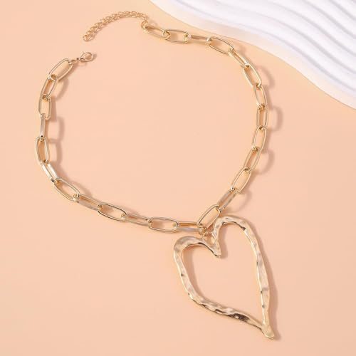 HOT ! Chunky Gold Heart Necklace for Women,Y2K Big Heart Statement Necklace Long Puffy Hearts Chain Charm Necklaces Trendy Jewerly