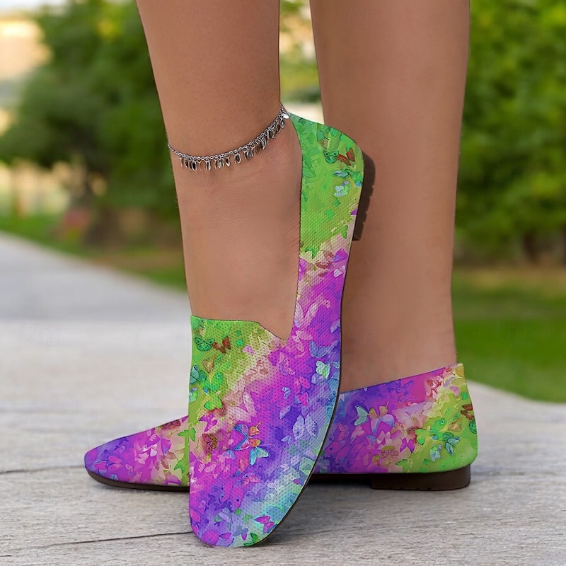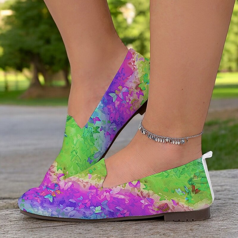 More information about Rainbow Gradient Butterfly Print Knit Flats, Perfect for Casual Outings, Summer Events, and Outdoor Festivals
