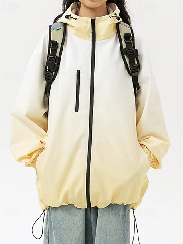 Women's Hoodie Jacket Waterproof Rain Jackets Rain Coats Warm Comfortable Zipper Pocket Fashion Color Gradient Outdoor Vacation Zipper Regular Hooded Regular Fit Long Sleeve Outerwear Yellow Light 1