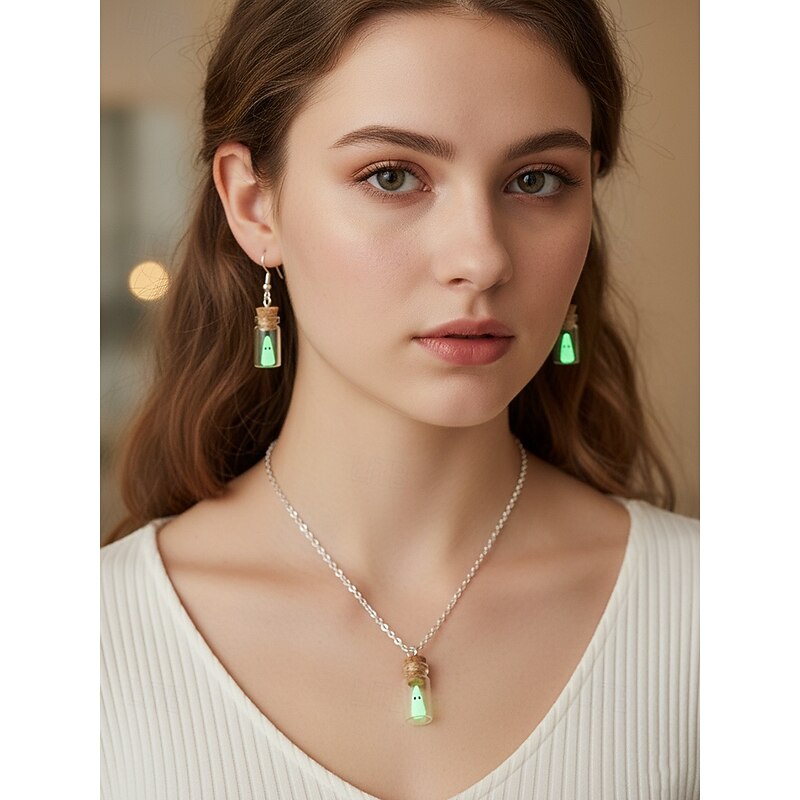€9.99 - Women's Halloween Glow in the Dark Ghost Jewelry Set – Cute Bottle Pendant Necklace and Earrings for Party, Cosplay and Night Out 2025. Shop for cheap Halloween Accessories online? Buy at lightinthebox.com on sale today!