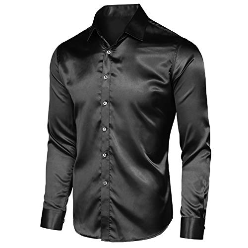 More information about VICALLED Men's Satin Luxury Dress Shirt Slim Fit Silk Casual Dance Party Long Sleeve Fitted Wrinkle Free Tuxedo Shirts