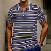 More information about Men's Striped Rugby Polo Short Sleeve Polo Shirts Collared Shirts Casual School Outdoor Sports Daily Wear 3D Print Summer Blue