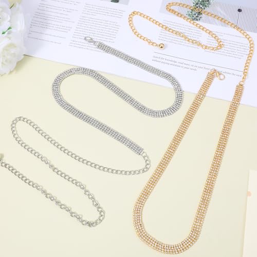 2pcs Sparkly Belts for Women, 125.5cm/49.4 In Gold and Silver Rhinestone Belt, Rhinestone Belt for Formal Dress Wedding Bridal, Gold & Silver 4