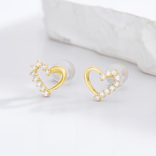 HOT ! 10k Gold 0.14 ct Lab Grown Diamond Heart Stud Earrings for Women, Fine Jewelry Gifts for Her