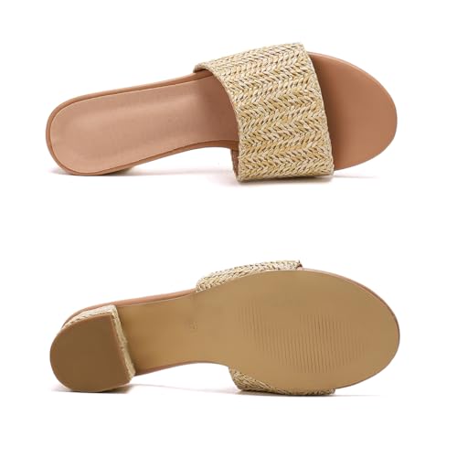 getmorebeauty Raffia Heeled Sandals for Women Chunky Heels Open Toe Slides Mules Sandals Slip On Summer Shoes 7