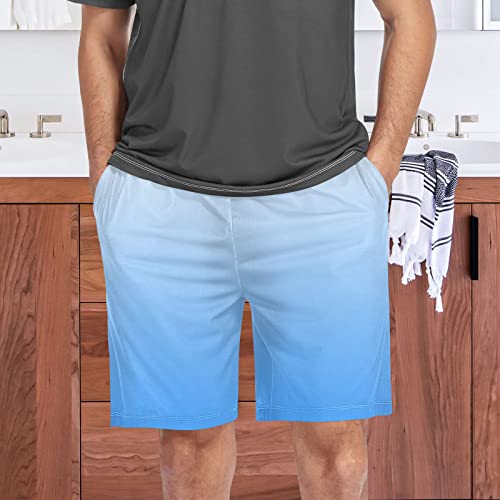 HOT ! Gradient Dodger Blue Pajama Shorts for Men,Men's Pajama Bottoms,Sleepwear S