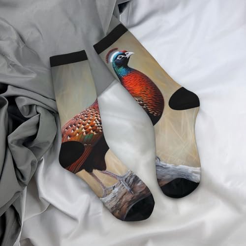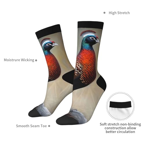 HOT ! Athletic Socks for Men Sport Running Calf Socks Red Pheasant Crew Socks for Women Novelty Socks