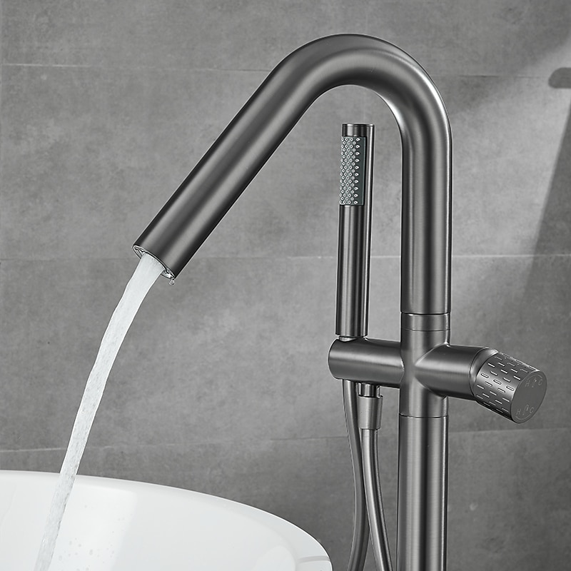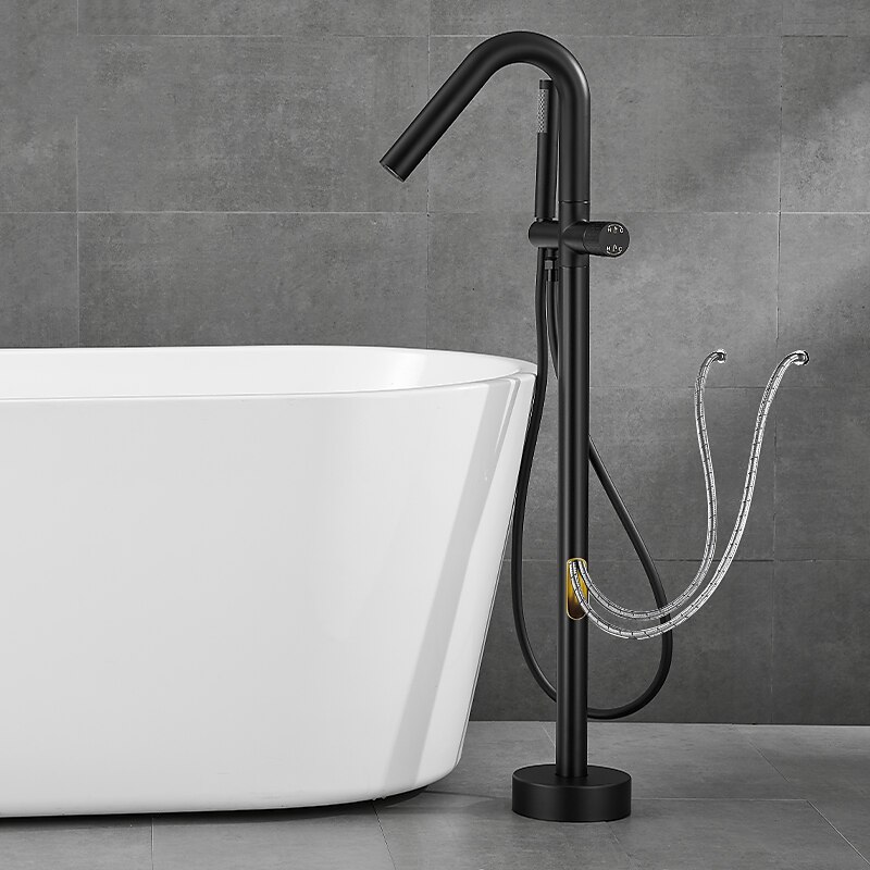 Bathtub Faucet Floor Mount Freestanding Tub Filler Brass High Flow Shower Faucets with Handheld Shower Mixer Taps Swivel Spout 1