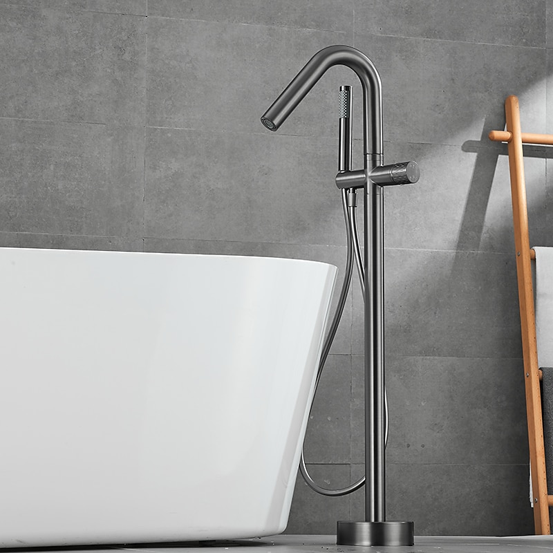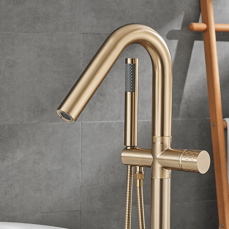 Bathtub Faucet Floor Mount Freestanding Tub Filler Brass High Flow Shower Faucets with Handheld Shower Mixer Taps Swivel Spout 26