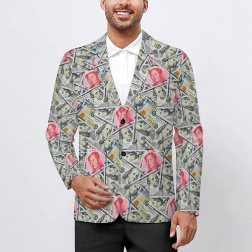 Dollar and Rmb Mens Suit Jacket Lapel Blazers V Neck Button Business Coat Tuxedo for Wedding Party 1