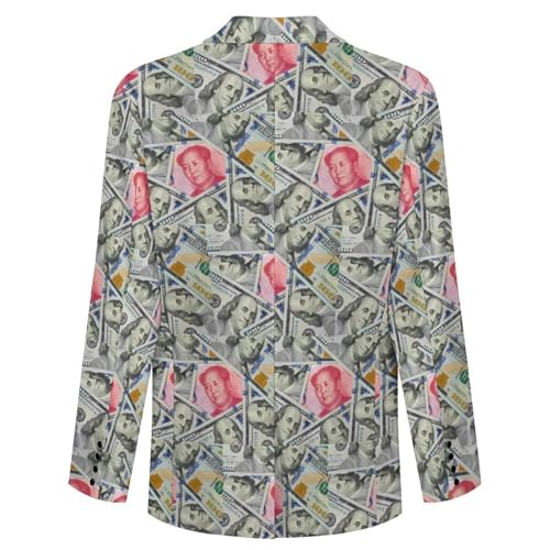 Dollar and Rmb Mens Suit Jacket Lapel Blazers V Neck Button Business Coat Tuxedo for Wedding Party 3
