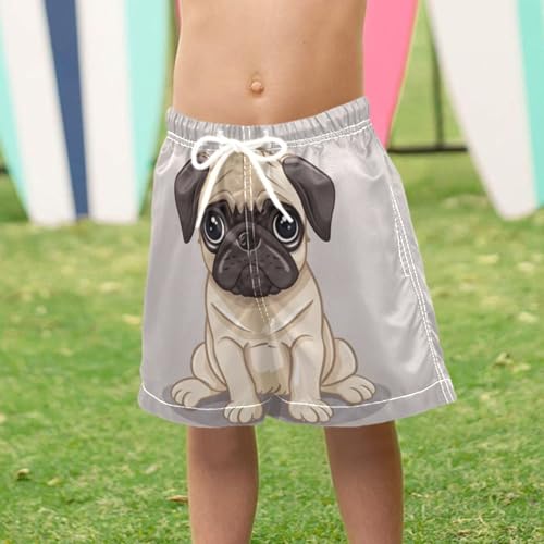 Pigsaly Boys Swim Trunks Cartoon Pug Dog Bulldog Boys Board Shorts Swimsuit Swimwear Summer Bathing Suit 4T Multicolor 4