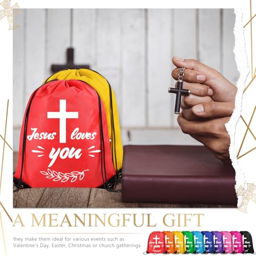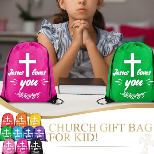 tough and Convenient: Our 30 Pieces Jesus Loves You Drawstring Backpack is made of high-quality materials, ensuring its durability for long-term use. The drawstring design allows for easy opening and closing, making it convenient for storing and carrying itemsPerfect for Vacation Bible School: Designed specifically for vacation bible school activities, this backpack is a must-have item for kids. It features the inspiring message Jesus Loves You on the front, serving as a constant reminder of faith and loveMeaningful Religious Gifts: Looking for a special gift for Christmas Shoebox or religious events? Look no further! Our Jesus Loves You Drawstring Backpack is an ideal choice. It not only provides a practical storage solution but also serves as a meaningful religious gift for kidsChristian Party Favors: Planning a Christian-themed party or event? These drawstring backpacks are excellent as party favors for kids. They will not only bring joy and excitement to the young guests but also spread the message of faith and loveVersatile Sunday School Gift Bags: Whether you're organizing a Sunday school activity or a religious Easter craft event, our drawstring backpacks can be used as versatile gift bags. Fill them with small toys, candies, or educational materials and distribute them to the children, making the learning experience more enjoyable and memorable