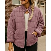 More information about Women's Winter Crop Coat Fleece Jacket Zip Up Jacket Thick with Pockets Long Sleeve Top Athleisure Solid Colored Windproof Warm Hiking Travel Vacation Sportswear Activewear Black White Pink