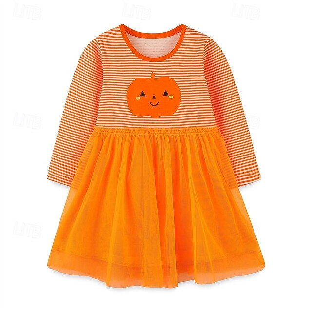 More information about Girls' 3D Pumpkin Striped Dress Long Sleeve Spring Fall Vacation Daily Holiday Princess Beautiful Sweet Little Kids(4-7ys) 4-7 Years Casual Dress A Line Dress Knee-length Regular Fit