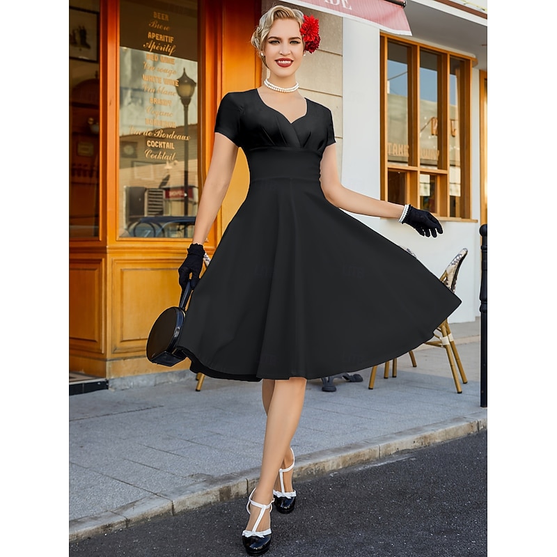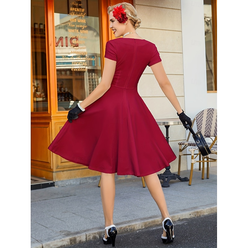 HOT ! Retro Vintage 1950s Rockabilly Midi Dress A Line Dress Flare Dress Fit & Flare V Neck Fancy Dress Women's Halloween Carnival Valentine's Day Casual Homecoming Retro Theme Party Adults' Dress Summer