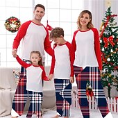 More information about Family Pajamas Christmas Pattern Home Print Black White Light Red Long Sleeve Adorable Matching Outfits
