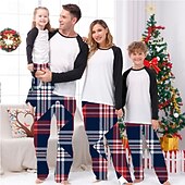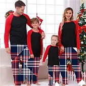 Family Pajamas Christmas Pattern Home Print Black White Light Red Long Sleeve Adorable Matching Outfits 1