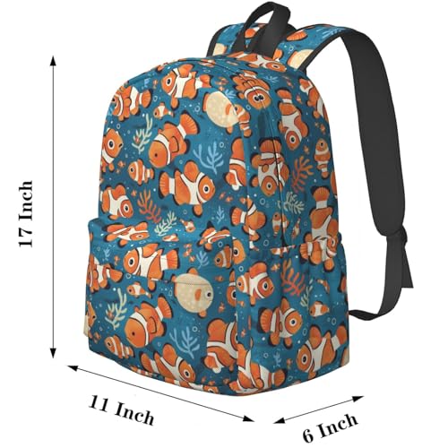 • ❤【Reasonable Design】: Vivid Tropical Fish Clownfishes Print Design Backpack, The Back Of The Backpack Is Ergonomically Designed For Greater Comfort, Large-Capacity Design, Main Compartment Inside, 1 Small Zipper Front Pocket; 2 Side Pouchs. simple Access 15-Inch Laptop And Ipad Compartment Separate From Roomy Main Compartment.