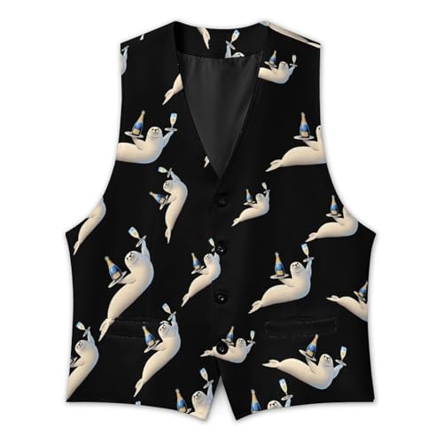 Cute Seal And Champagne Novelty Men's Suit Vest Funny Formal Dress Vests Business Waistcoat 6