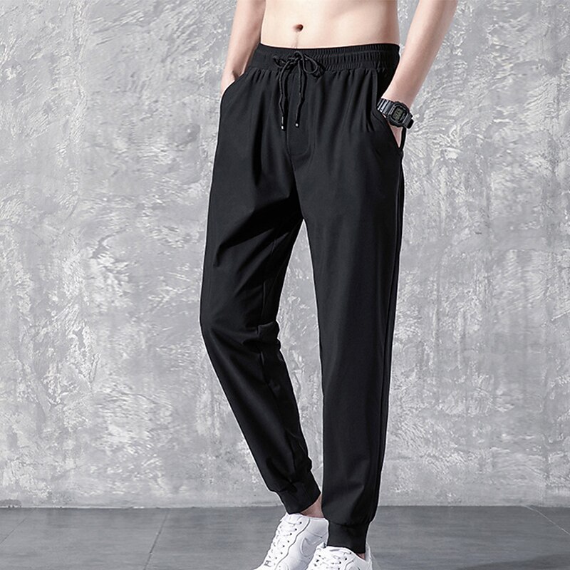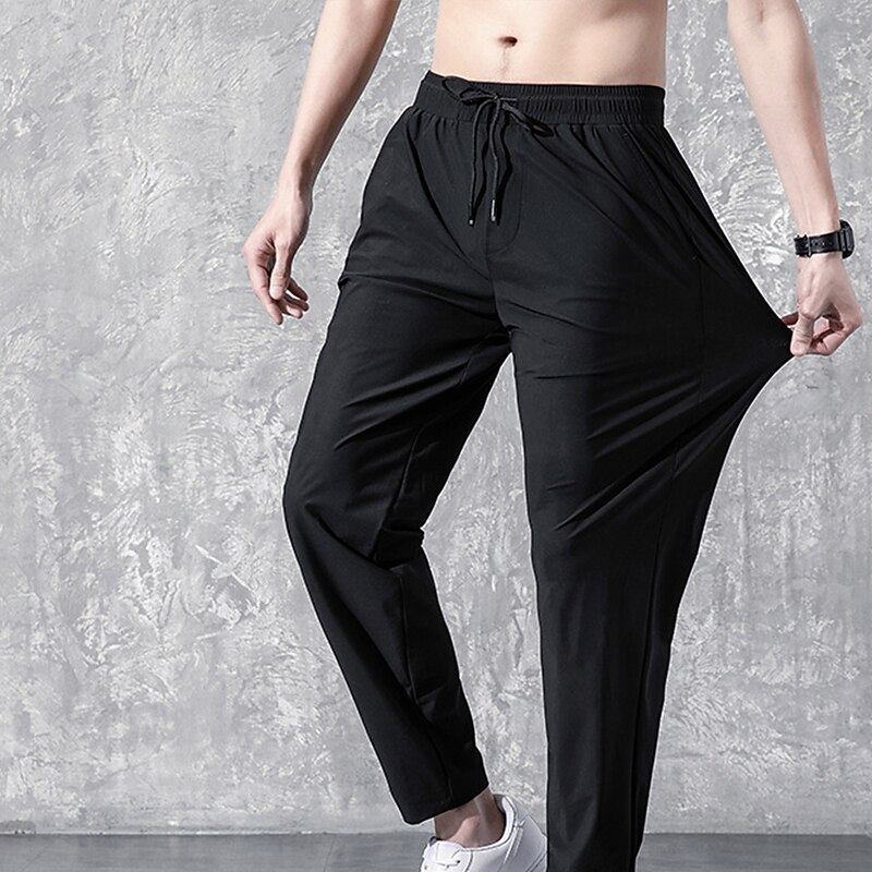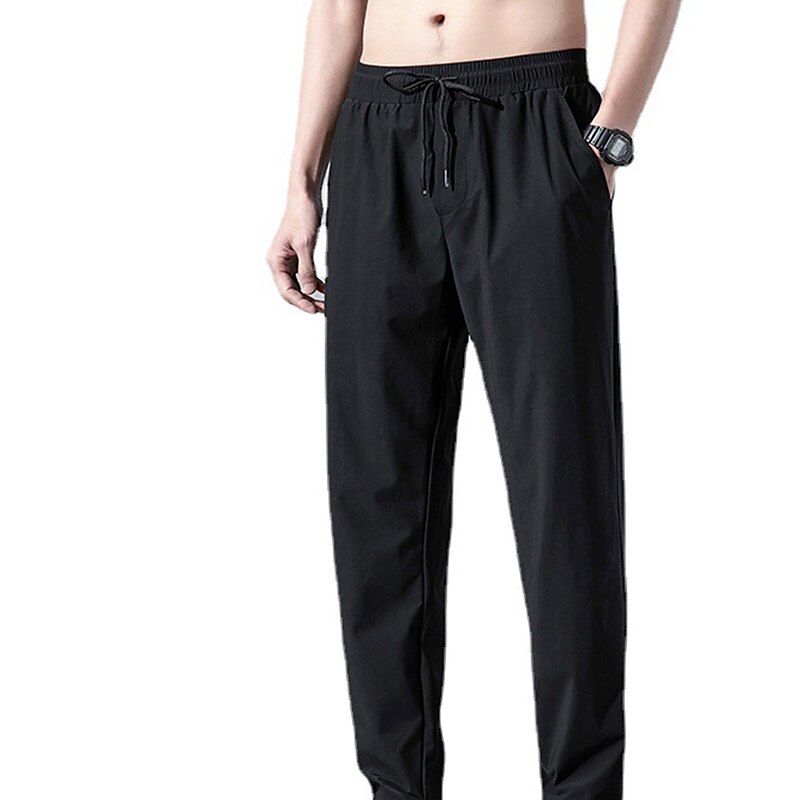 Men's Active Trousers Casual Pants Pocket Drawstring Elastic Waist Solid Color Breathable Outdoor Full Length Casual Daily Streetwear Stylish Casual / Sporty Black Straight Leg Micro-elastic 9