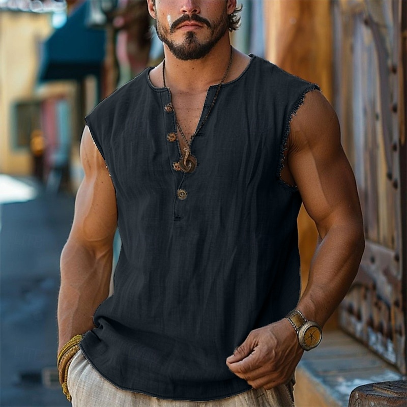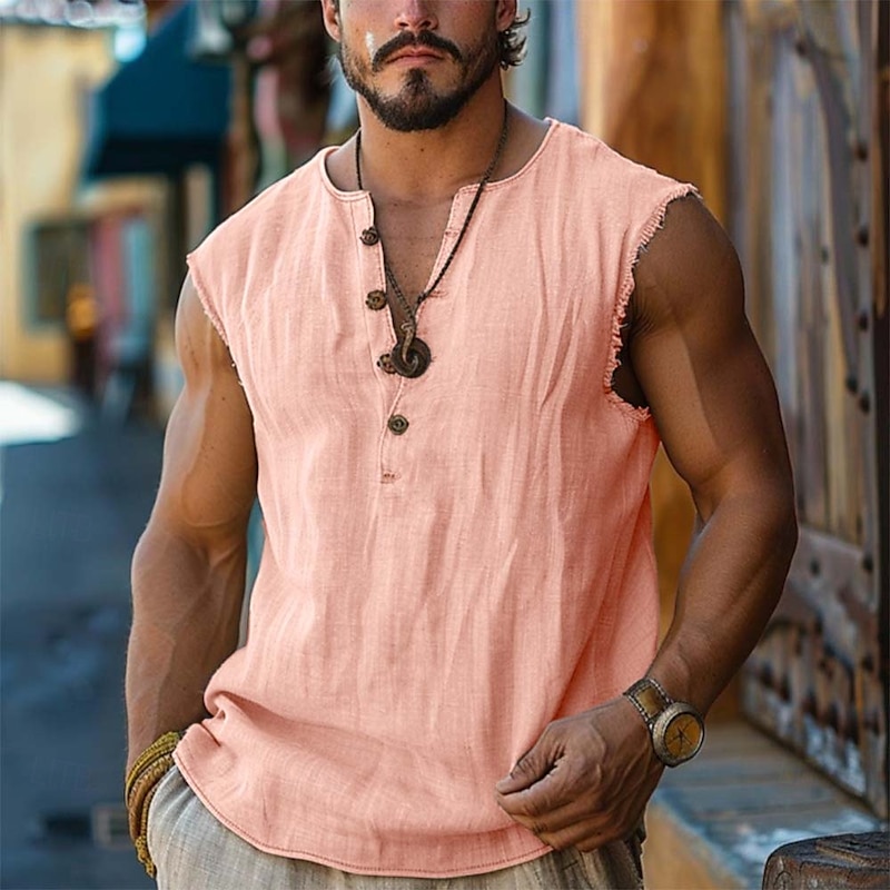 $8.49 - Men's Henley Shirt Vest Top Linen Tank Top Sleeveless Shirt Sleeveless Henley Summer Plain Fashion Designer Bohemian Buttons Vacation Casual Going out Black White Pink Top Tee for Men 2025. Shop for cheap Tank Tops online? Buy at lightinthebox.com on sale today!