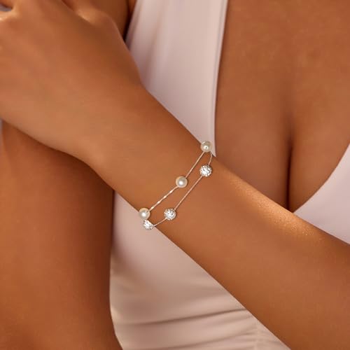 • Pearl Bracelet: Our pearl bracelets for women are made of high quality 925 sterling silver, 7 mm pearls and crystal beads, lead and nickel free, hypoallergenic, not easy to fade and tarnish; Silver pearl bracelet shiny appearance and comfortable to wear