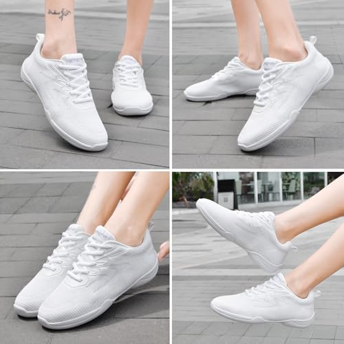 • 【Breathable Mesh for All-Day Comfort】 Engineered with a soft knitted upper and mesh tongue, these girls white cheer shoes maximize airflow to keep feet cool during rigorous training. Ideal cheer shoes for girls offer unmatched comfort and heat control for extended wear.