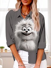 More information about Women's Shirt 3D Active Daily Stylish Long Sleeve Shirt Collar Regular Tops Daily Holiday Buttons Print Dark Gray Gray Summer Spring Fall