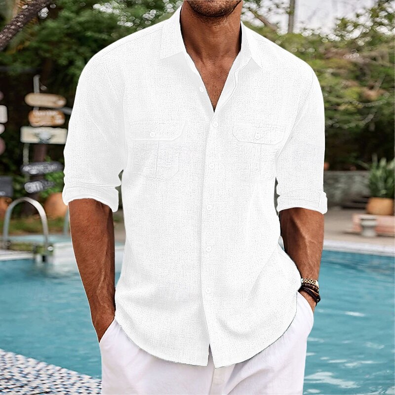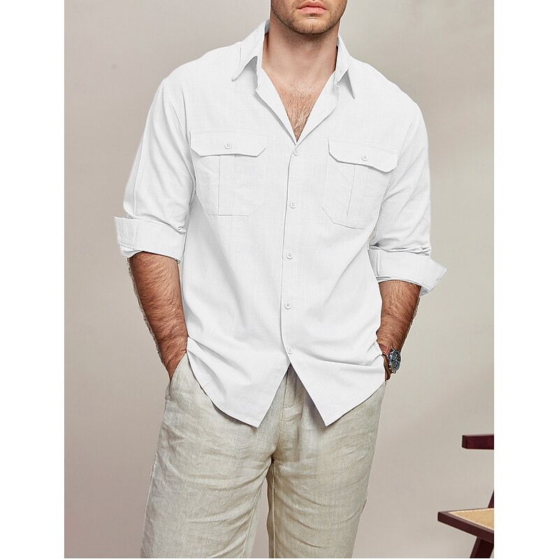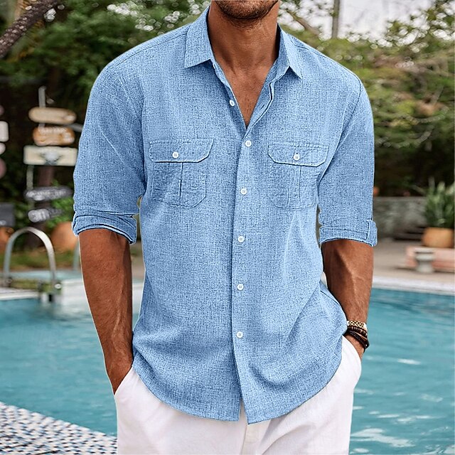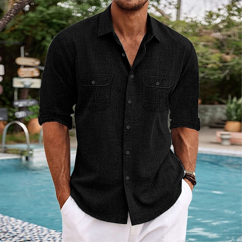 HOT ! Men's Shirt Cotton Linen Shirt Summer Shirt Beach Wear Casual Shirt Button Up Shirt Plain Vacation Casual Black White Blue Long Sleeve Lapel Spring & Summer Clothing Apparel Pocket