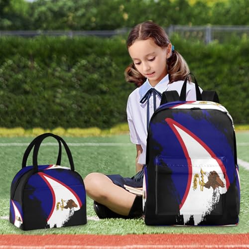 American Samoa Flag Brush Stroke Backpack with Lunch Box Set for Boys Girls Kids Lightweight Durable School Bag Travel 6