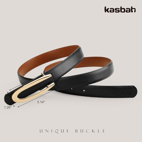 More information about KASBAH Reversible Leather Belts For Women with Gold Buckle Fashion 2-Sided Belt Ladies Waist Belt for Jeans Dresses Pants
